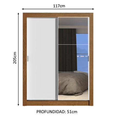 Placard Soltero 2 Puertas Corredizas con Espejo Blanco/...