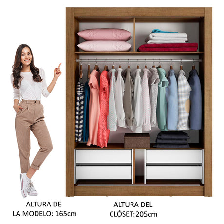Placard Soltero 2 Puertas Corredizas con Espejo 4 Cajon...
