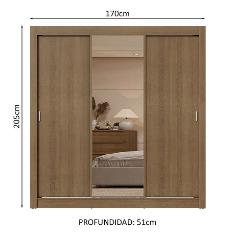 Placard Matrimonial 3 Puertas Corredizas con Espejo 2 C...