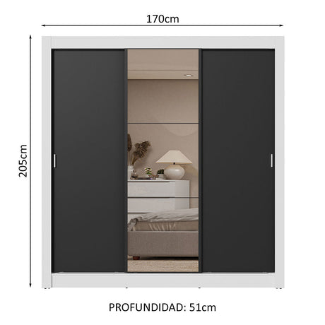 Placard Matrimonial 3 Puertas Corredizas Blanco/Negro N...