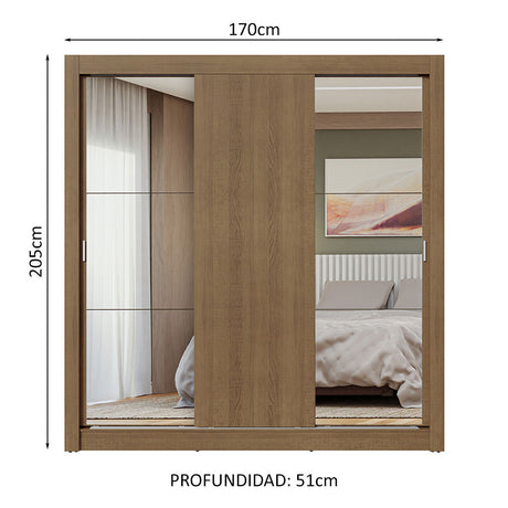 Placard 2 Puertas Corredizas con Espejo Marrón Max