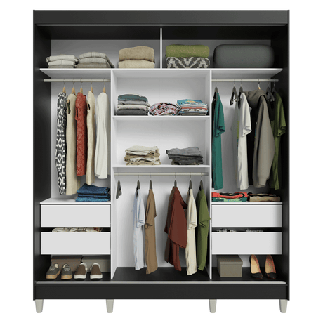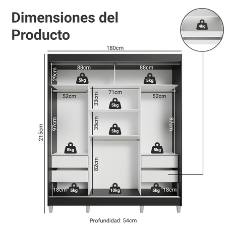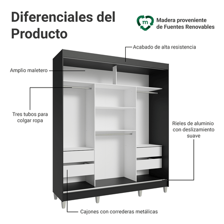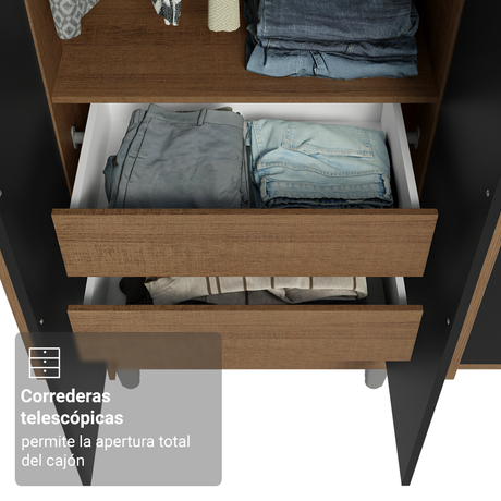 Placard 2 Puertas Corredizas con Espejos 2 Cajones Negr...