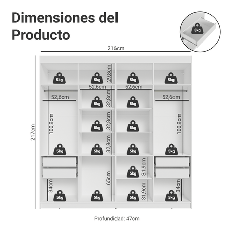 Placard Soltero 2 Puertas Corredizas 2 Cajones Blanco/M...
