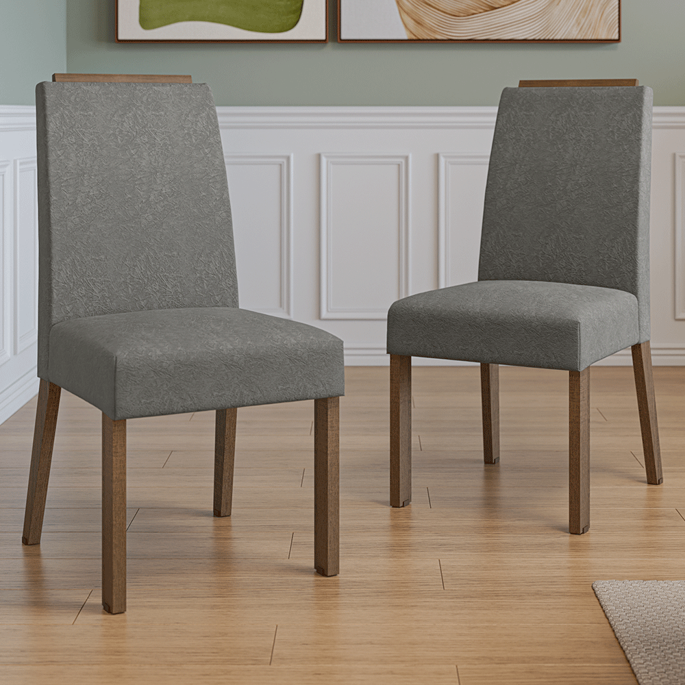 El tapizado Tecido suede silver, en el tono Gris, es versátil y atemporal, y combina a la perfección con cualquier decoración. La espuma de alta densidad proporciona comodidad, lo que convierte a cada silla en la opción perfecta para quienes valoran el estilo y el bienestar.