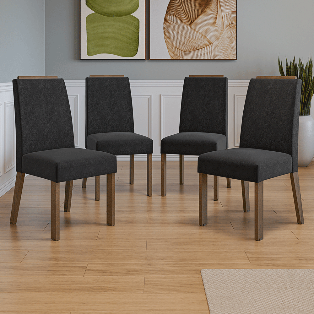 Juego de 4 Sillas 4255 con Detalle Madera Marrón/Oxford