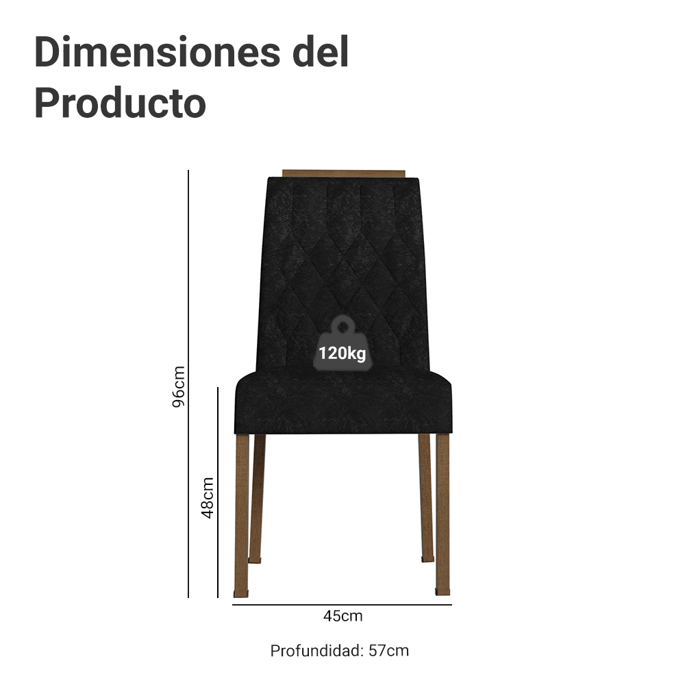 La tapicería en tela Oxford Suede, en color negro, combina fácilmente con diferentes estilos de decoración, ofreciendo no solo un toque moderno, sino también resistencia y facilidad de mantenimiento. La espuma de alta densidad proporciona comodidad, lo que convierte a cada silla en la opción perfecta para quienes valoran el estilo y el bienestar.