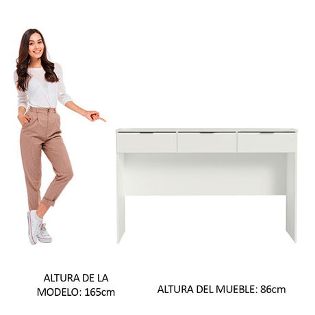 Ofrece espacio para guardar maquillaje, perfumes, joyas y accesorios, además de una superficie amplia para apoyar objetos y un espejo que facilita la rutina diaria.