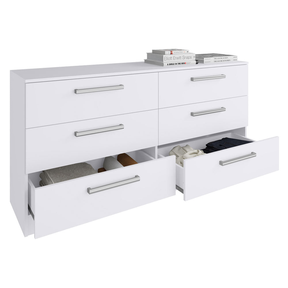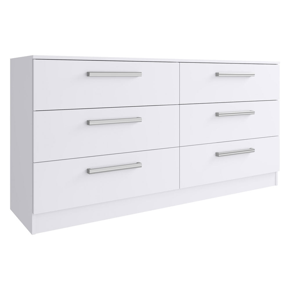 Una (1) cómoda blanca con 6 cajones y tiradores de PVC.