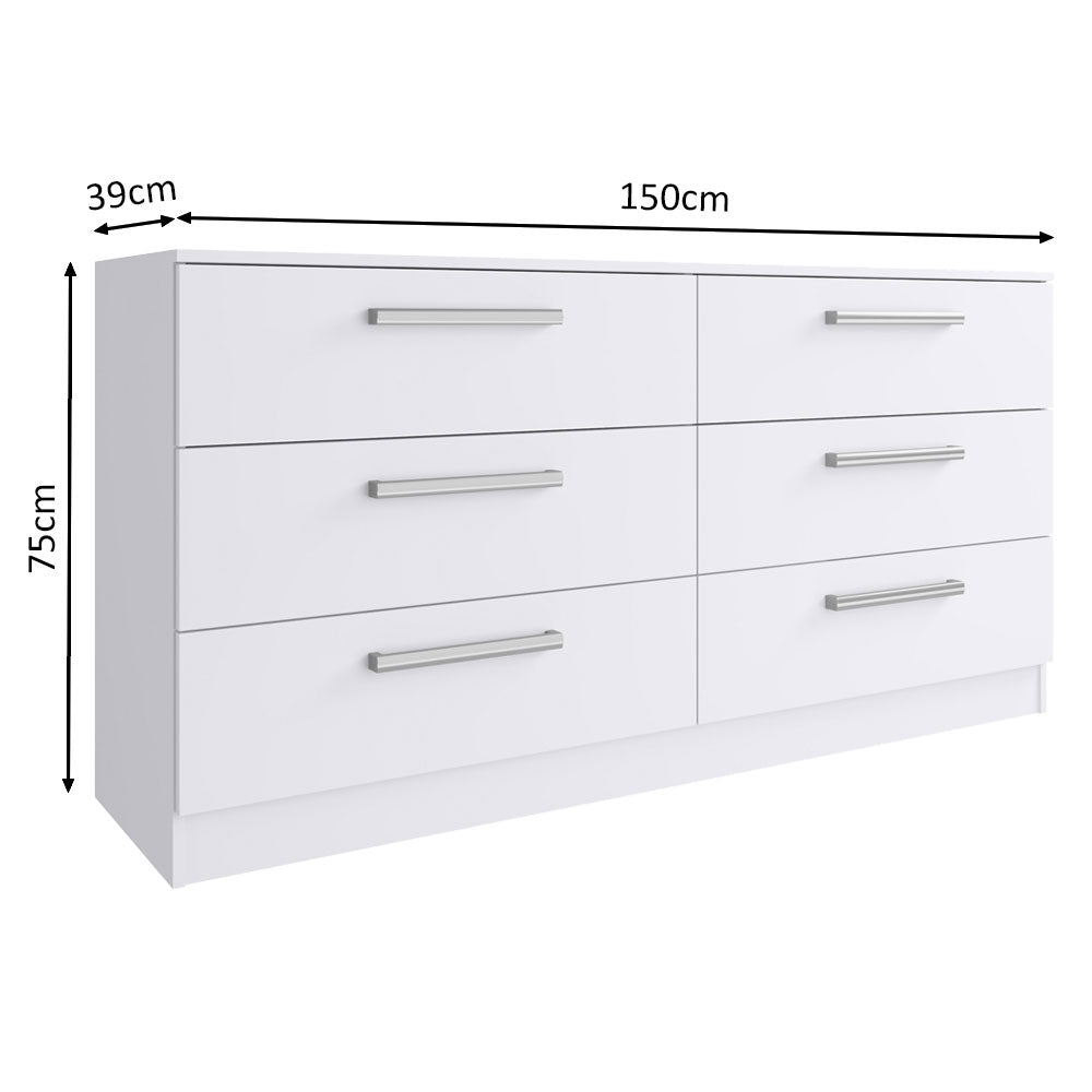Medidas de la cómoda: 75 cm de altura x 150 cm de ancho x 39 cm de profundidad.