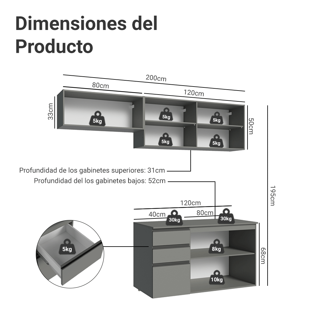 Combo de Cocina Flotante 200cm Gris Nice Madesa 05