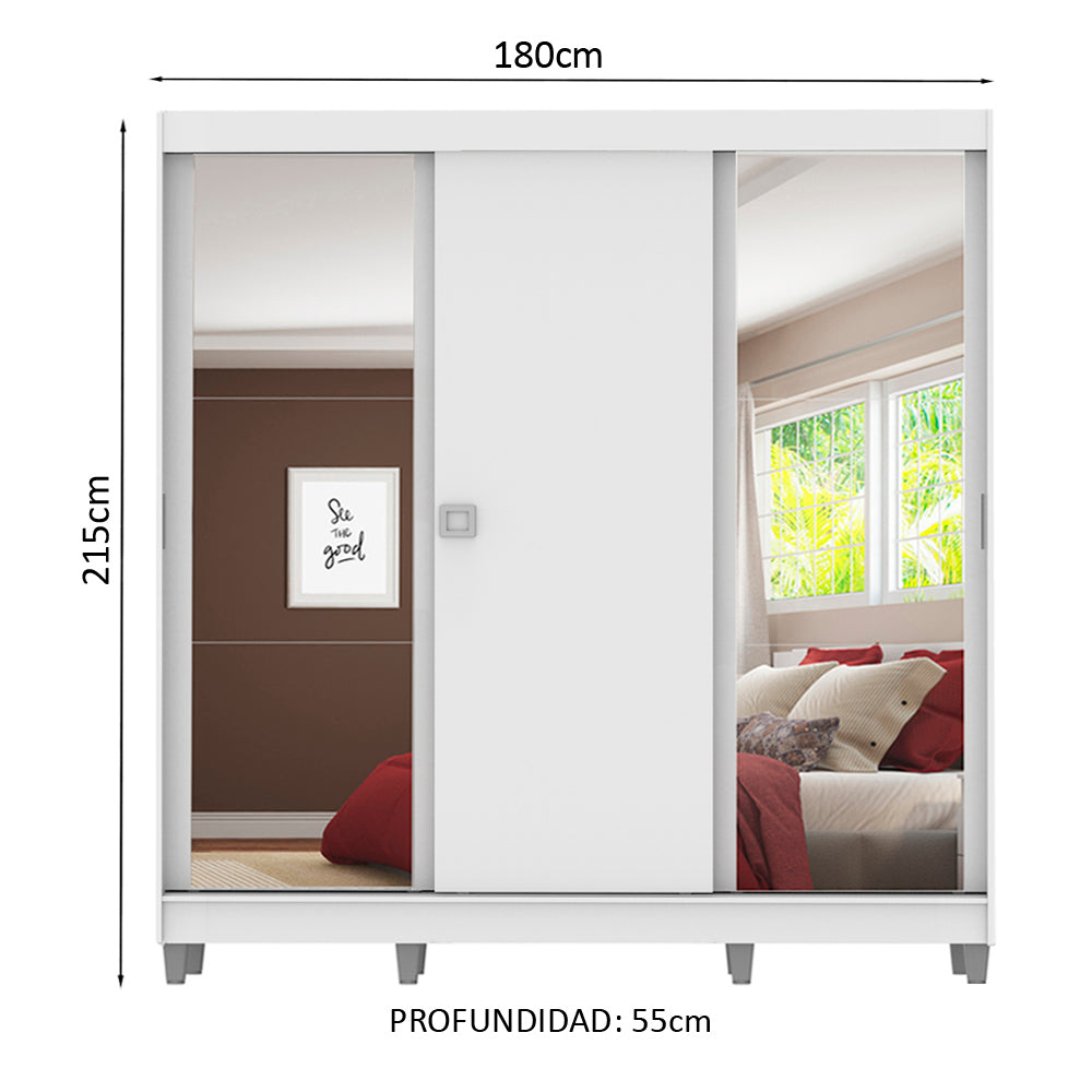 Ropero de Matrimonio Madesa Napoli con 3 Puertas Corredizas con Espejo y Patas