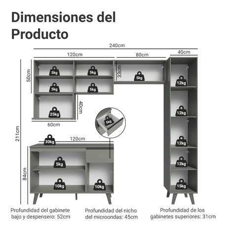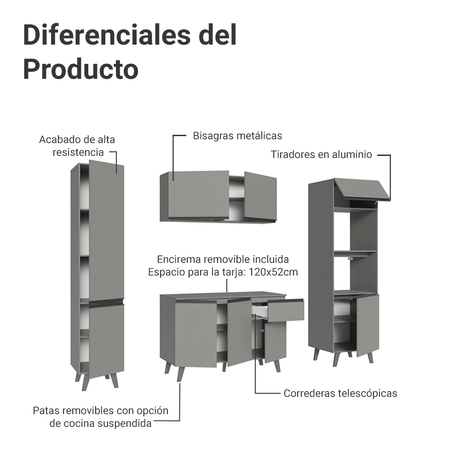 Combo completo de Cocina 240 cm Flotante Gris Nice Made...
