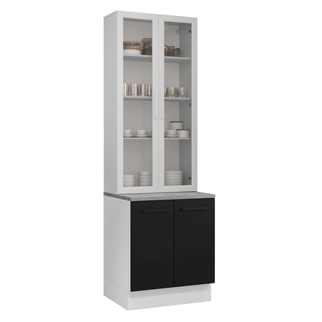 Kit Bajo Mesada + Cristalero 70cm Blanco/Negro Agata Ma...