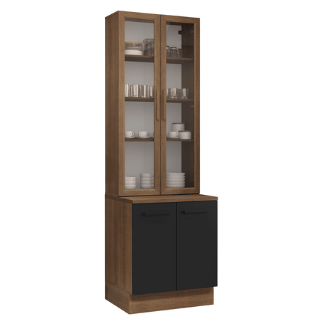 Kit Bajo Mesada + Cristalero 70cm Marrón/Negro Agata Ma...