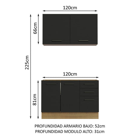 Bajo Mesada para Bacha 120 cm 1 Puerta y 2 Cajones (Con...
