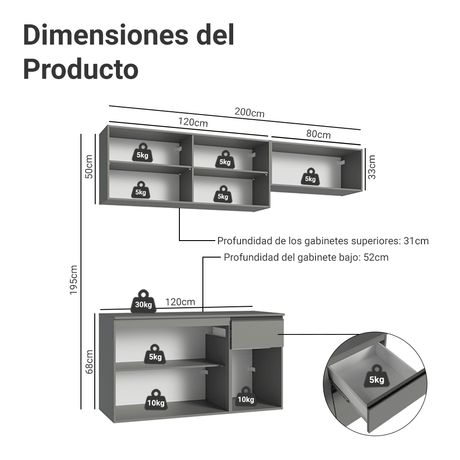 Combo de Cocina 200cm Gris Nice Madesa 06