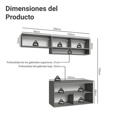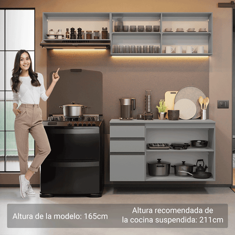 Combo de Cocina Flotante 200cm Gris Nice Madesa 05
