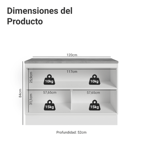 Bajo Mesada de Cocina 120 cm 2 Puertas Blanco Mesada Ma...