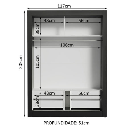 Placard Soltero Dallas 2 Puertas Corredizas 2 Cajones N...