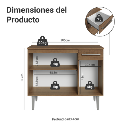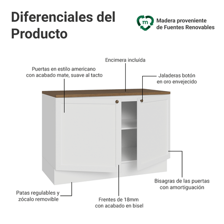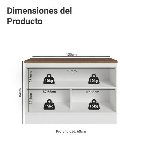Bajo Mesada de Cocina 120 x 60 cm 2 Puertas (con Mesada...