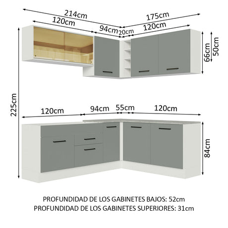 Combo completo de Cocina Esquinera 389cm Blanco/Gris Ag...