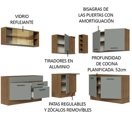 Combo completo de Cocina Esquinera 389cm Marrón/Gris Ag...