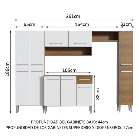 Combo completo de Cocina Emilly Hit 261cm Marrón/Blanco