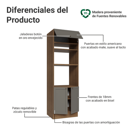 Mueble de cocina para Horno/ microondas 70 cm 3 Puertas...