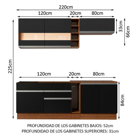 Combo completo de Cocina Madesa Glamy 220cm Marrón/Negr...