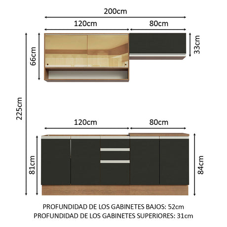 Combo de Cocina 200cm Madesa Glamy Marrón/Negro 03
