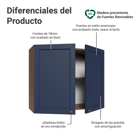Alacena 80 cm 2 Puertas Marrón/Azul Vik Madesa
