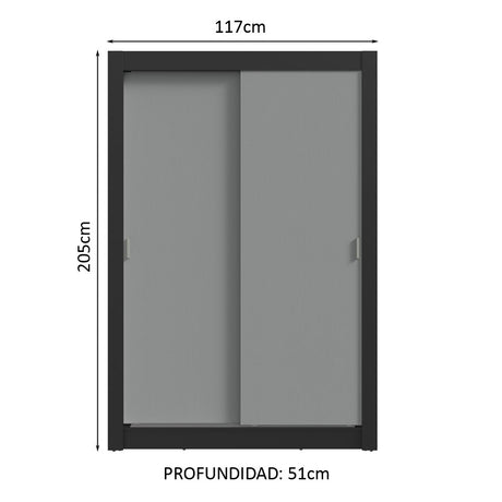 Placard Soltero 2 Puertas Corredizas 4 Cajones Negro/Gr...