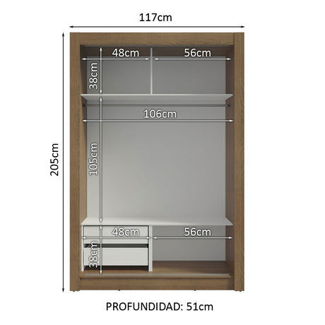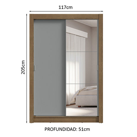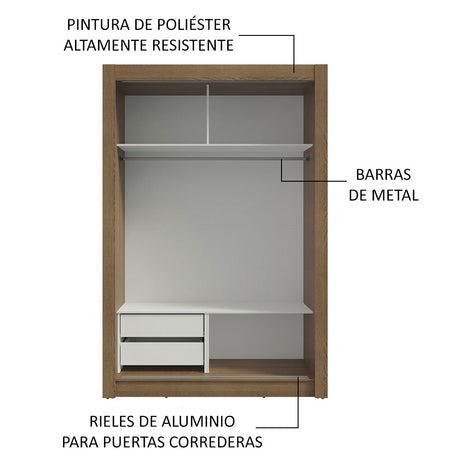 Placard Soltero 2 Puertas Corredizas 2 Cajones Marrón/G...