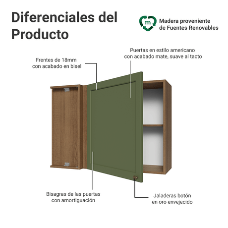 Alacena esquinero 1 Puerta Marrón/Verde Vik Madesa