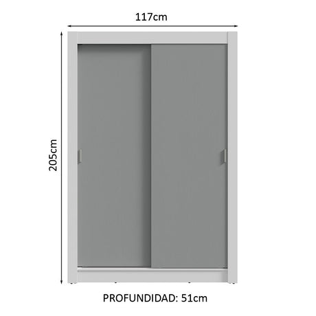 Placard Soltero 2 Puertas Corredizas Blanco/Gris Milano