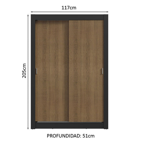 Placard Soltero 2 Puertas Corredizas Negro/Marrón Milan...