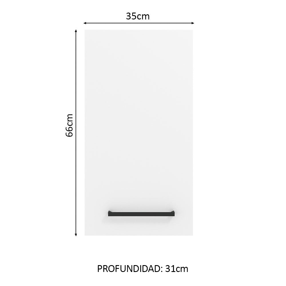 El Gabinete Superior de 35 cm de la línea Agata de Madesa tiene una puerta convencional y un espacio interno dividido en dos nichos que es perfecto para organizar utensilios, vajilla, comestibles y lo que prefiera.