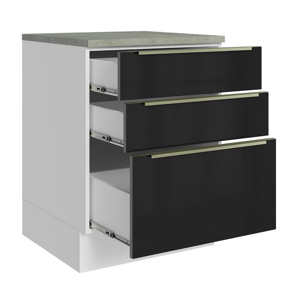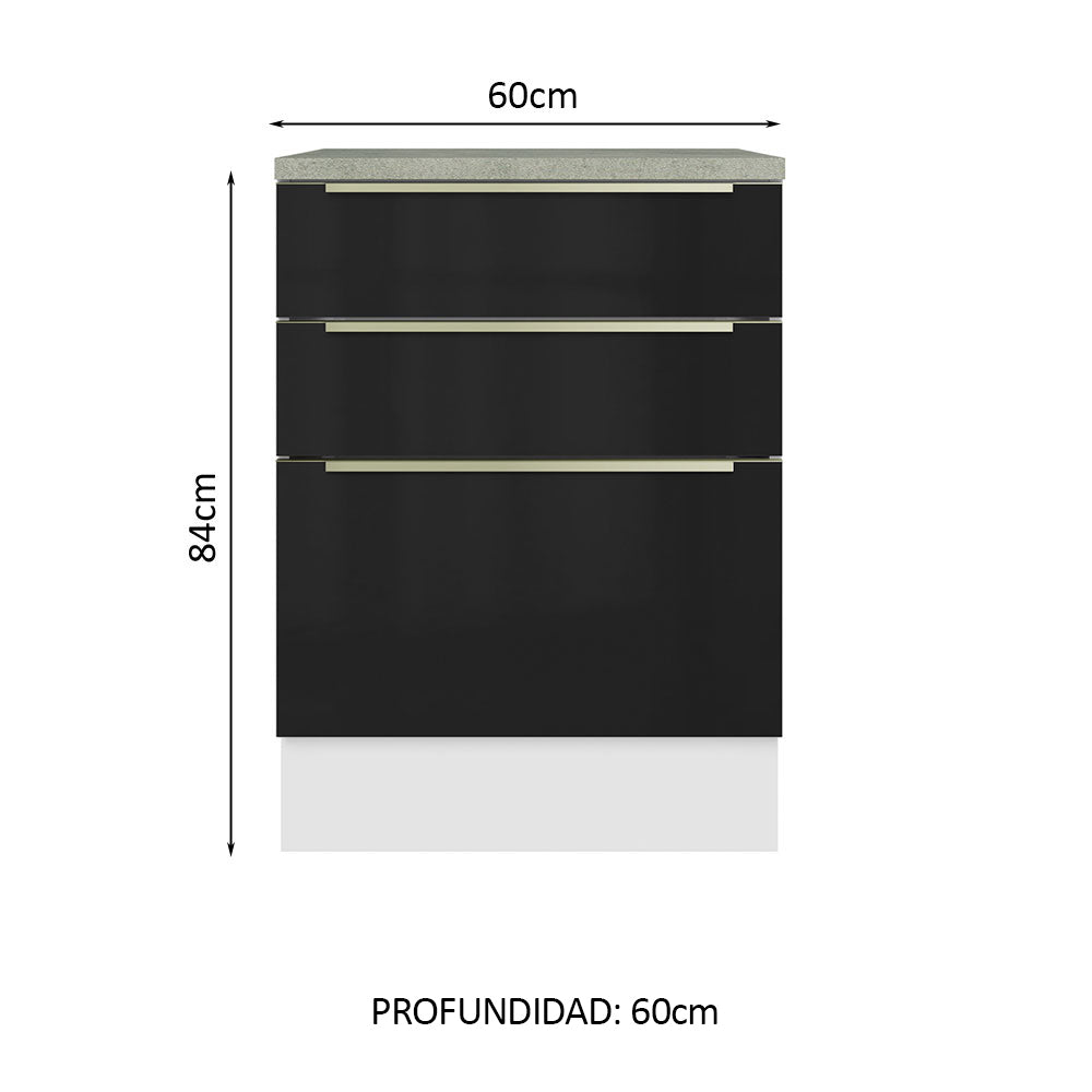 Bajo Mesada 60 cm x 60 cm, 3 Cajones Lux Blanco/Negro