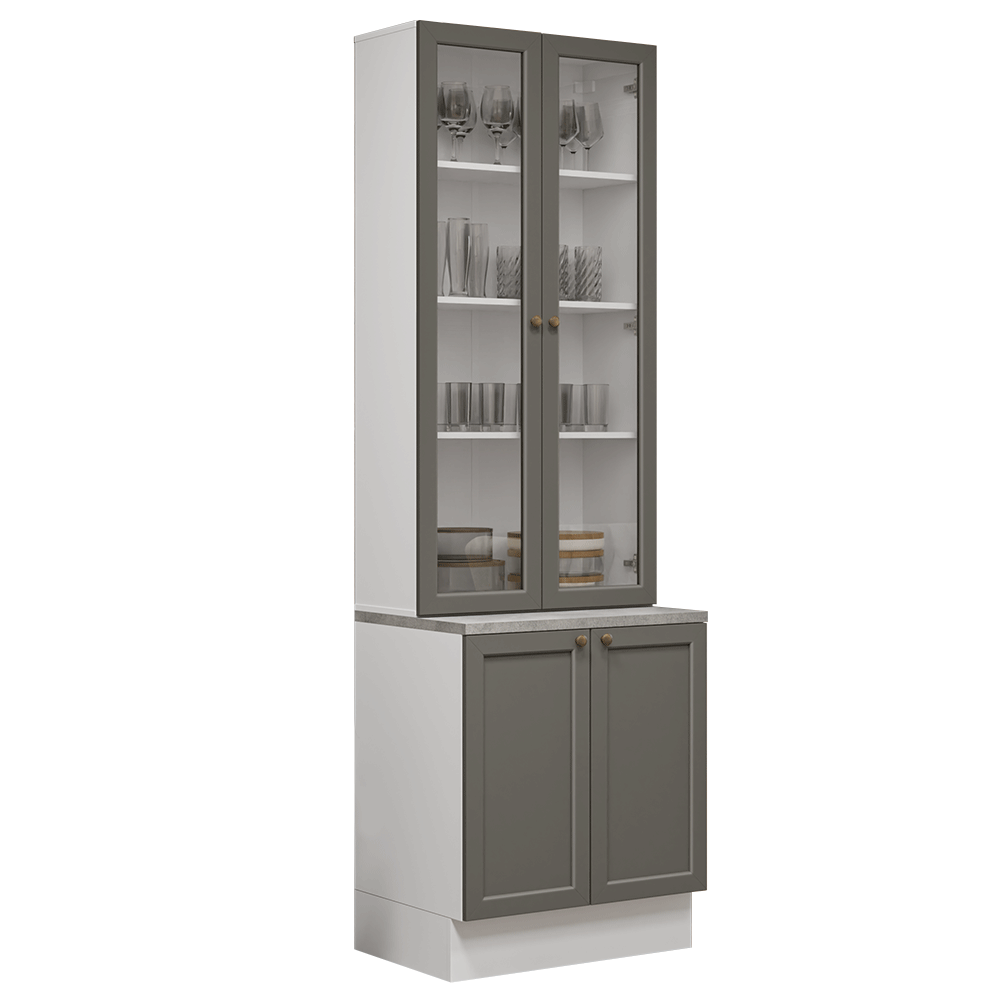 Además de añadir sofisticación al espacio, ofrece visibilidad para sus platos, permitiéndole mantener siempre sus piezas favoritas a la vista y bien organizadas. La base Gabinete bajo complementa el conjunto con practicidad y funcionalidad.