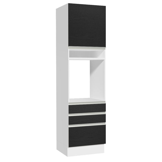 Un (1) mueble para horno de 225 cm de alto x 60 cm de ancho x 52 cm de profundidad con una (1) puerta, un (1) estante interno, dos (2) nichos externos y tres (3) cajones