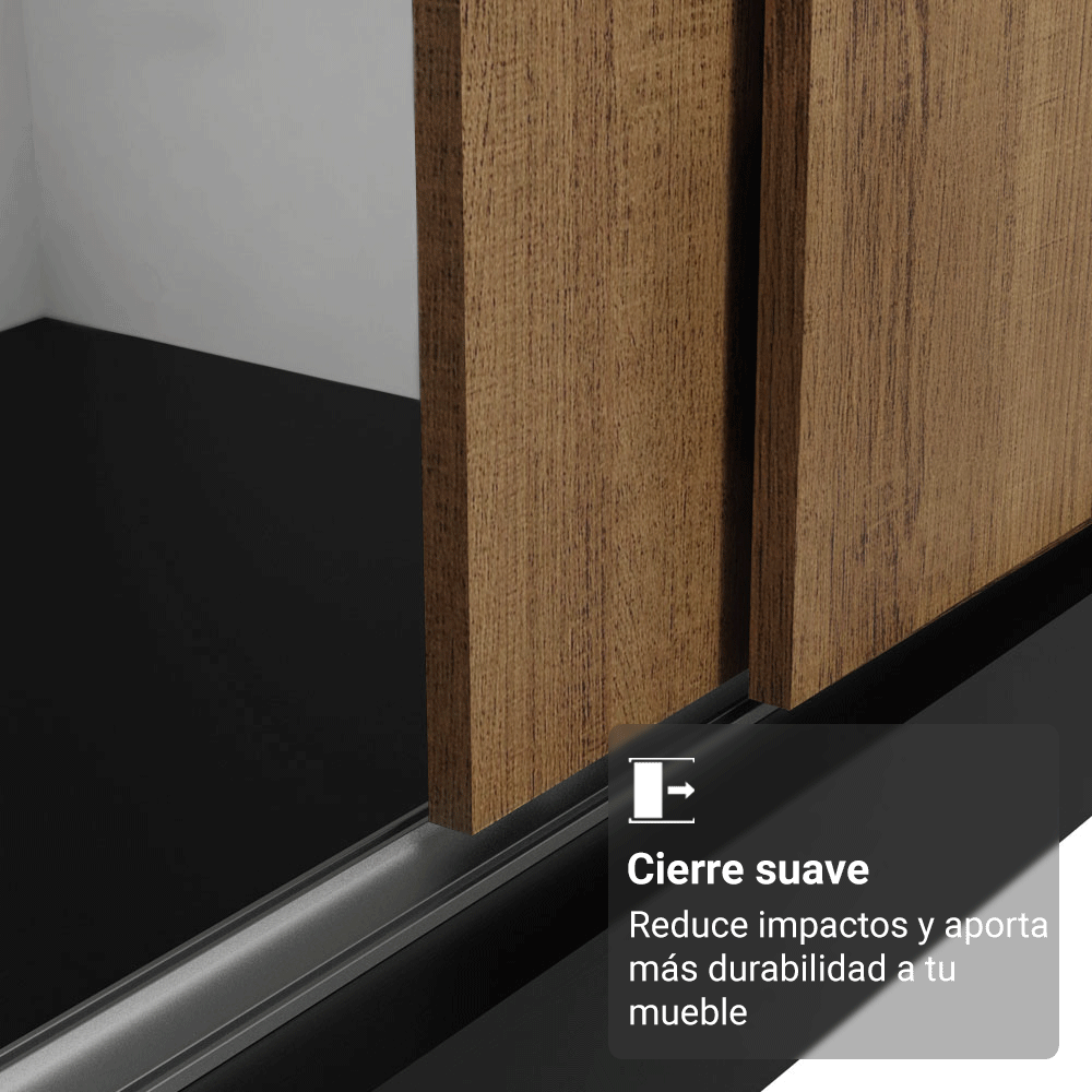 • Puertas corredizas con rieles de aluminio y deslizamiento suave que ahorran espacio y facilitan el uso diario.
