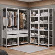 Cada módulo fue diseñado para proporcionar un espacio de almacenamiento organizado, uniendo practicidad y estilo para tu ambiente. Recibirás dos Clósets abiertos de 59 cm de ancho, cada uno con cinco estantes amplios, perfectos para ropa doblada, calzado y accesorios. Y además, dos Clósets abiertos de 70 cm de ancho, cada uno con dos cajones espaciosos, ideales para artículos pequeños y accesorios, además de los percheros metálicos.