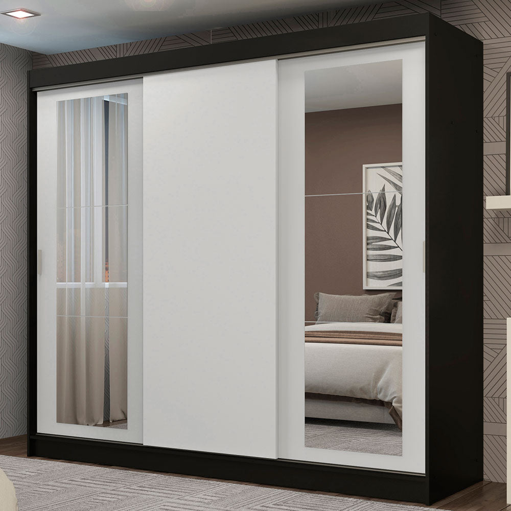 Placard Ropero Casal Madesa Kansas 3 Puertas Corredizas con Espejos 3 Cajones Negro/Blanco